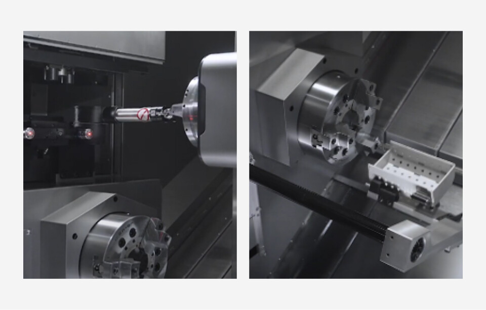 The dual spindles (1st and 2nd), 0.0001° B-axis, milling spindle, and servo tailstock offer outstanding multitasking capabilities, making it perfect for machining intricate parts.