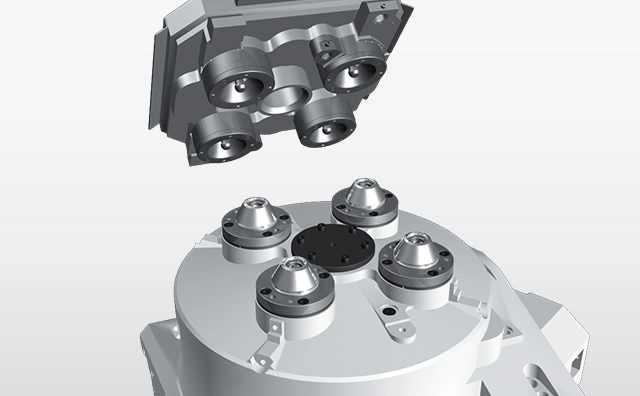 The clamping between the pallet and the workbench is achieved through tapered hole positioning, providing good rigidity and high repetitive positioning accuracy, capable of handling frequent pallet changes.