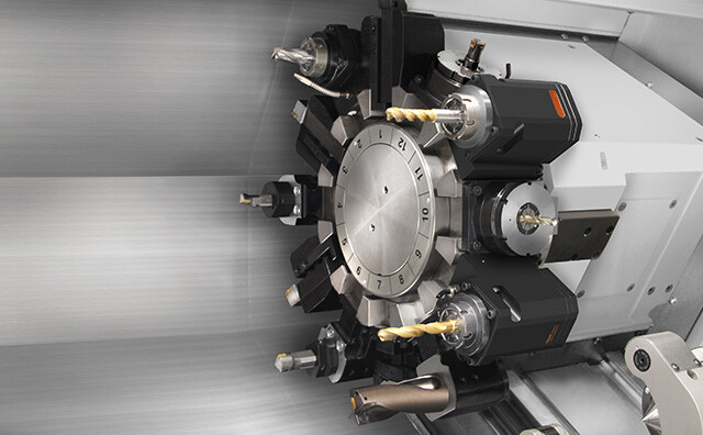 The drum-type tool turret is designed to minimize interference with the workpiece. Indexing is performed via a non-lifting rotational method, allowing for high-speed clamping/unclamping actions without interference. The tool turret features a high-rigidity fastening system with four bolts, and a 24-position turret option is also available.