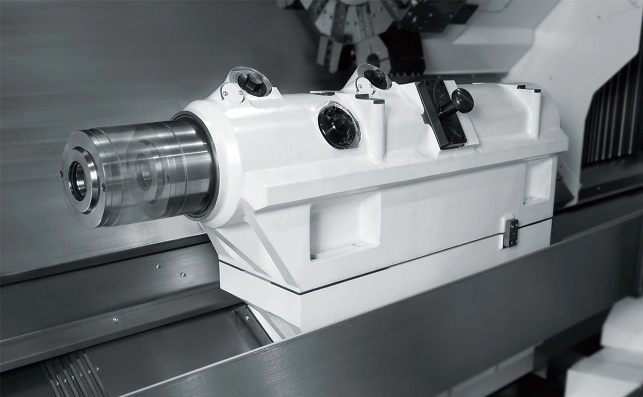 An optional self-propelled center rest with the largest size among similar products, Φ410mm, is available. CNC operation significantly reduces positioning time. The tailstock can be positioned closer to the center rest, expanding the machining area.
