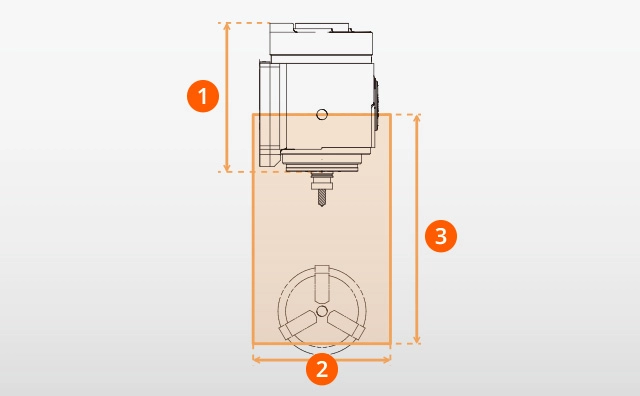 The compact milling spindle, which reduces interference with the workpiece, ensures a larger machining area.