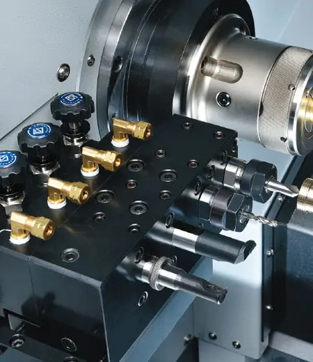 The comb-type tool holder can accommodate four tools and allows for complex contour machining of the workpiece's rear end, significantly reducing overall processing time.
